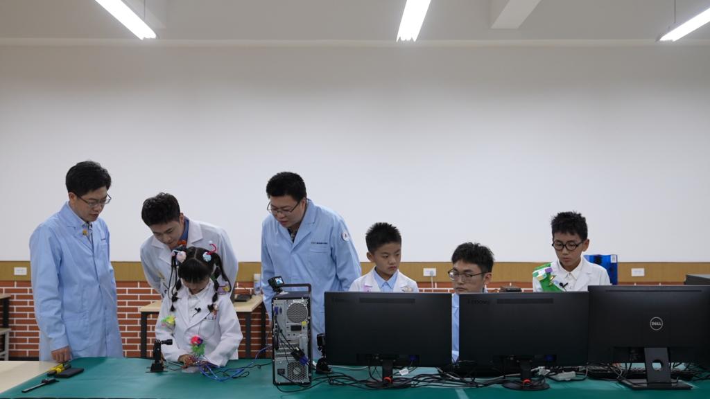 4月25日-26日,《实验室奇妙游》节目组来到山东省空间碎片监测与低轨卫星组网重点实验室进行真人秀录制,近距离的了解前沿科技背后的科学故事。研究生卢石磊、李文博和程哲作为科研人员代表参与了节目录制。录制过程中,实验室团队经过一系列精心策划的实验和互动环节,向奇妙社社员们展示了科学的趣味性和实用性。实验通过“遥控汽车过迷宫”、“模拟飞船发射和与空间站对接”以及“简易云台建模与孪生控制”,给社员们近距离直观的展现实验室团队研发的深空探测实时三维可视化技术,如何将复杂繁琐的航天数据转变成直观的三维可视画面,成功做到在0.1 秒内“翻译 ”数据,让宇宙深空“触手可及 ”。让孩子们了解深空探测实时三维可视化技术在国家载人航天、深空探测任务中发挥的重要作用,感受该技术的科技含量和科研魅力,在孩子们心中种下科学的种子。