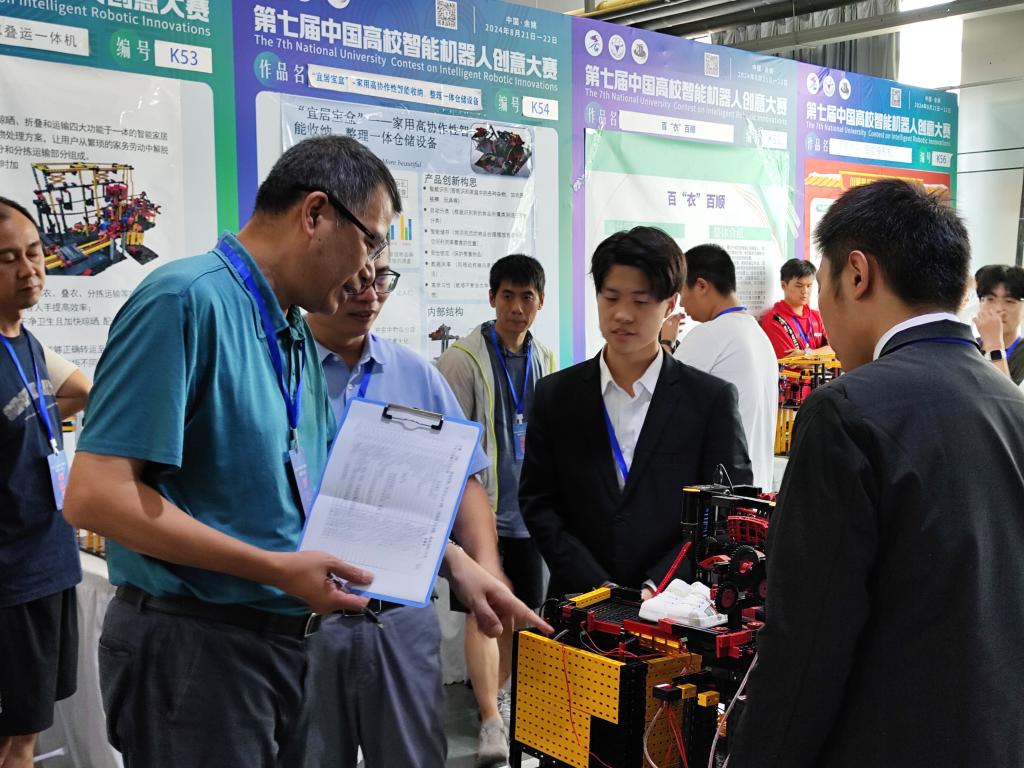 在第七届中国高校智能机器人创意大赛主题赛中,PP电子学生的参赛作品主要集中在模块化产品搭建组,经过现场展示与答辩,“家庭快餐——家用式餐具清洗及食材预处理集成一体机”与“味界智绘师——智能果蔬沙拉机”两项参赛作品获得国赛一等奖,“一种基于机器视觉自主学习的果蔬洗切一体机器”等三项参赛作品获得国赛二等奖。“全域洁净——面向狭窄场地的多轴轮式地面清洁机器人”等四项参赛作品获国赛三等奖。