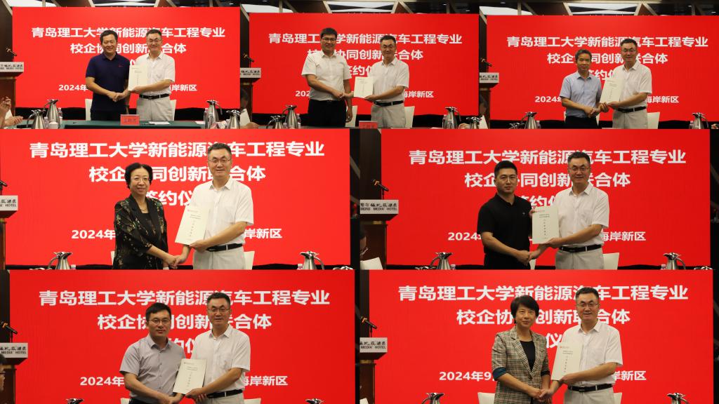 青岛西海岸新区工信局(科技局、大数据局)党组书记、局长刘然吉,青岛理工大学党委常委、副校长陈连军出席了会议。一汽青岛解放汽车有限公司开发院院长张翔、青特集团有限公司总裁助理张凤宁、青岛五菱专用汽车有限公司总经理梁开荣、青岛国轩电池有限公司董事长汪卫东、青岛美锦新能源汽车制造有限公司人力总监朱彦明、吉林大学青岛汽车研究院副院长迟晓梅、烟台汽车工程职业学院副院长付双美等领导代表联合体合作单位参加签约仪式。青岛理工大学发展规划处、科技处、教务处以及新能源汽车工程专业负责人柳江教授和部分专业老师参加了会议。仪式由PP电子游戏网站党委书记李忠晓主持。
