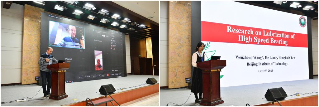 会议主题聚焦润滑接触的数值模拟、光学测量、轴承润滑、气液密封和表面涂层等内容。郭峰对各位专家的到来表示热烈欢迎和衷心地感谢,简要介绍了研讨会的背景、流程安排等。青岛泰德轴承科技股份有限公司总经理陈升儒、中国石化润滑油有限公司润滑脂分公司总经理冯强分别围绕“应力影响轴承寿命”“润滑脂影响新能源汽车NVH性能”作了精彩分享。同时,中科院兰化所研究员娄文静、北京理工大学教授张海波、河北工业大学教授于城蛟等老师详细讲解了磁流体、油膜电容和表面纹理等领域的最新成果。此外,北京理工大学博士研究生旁帅宇、青岛理工大学硕士研究生吴金龙、西安理工大学研究生陈锐搏等同学作了专题汇报。