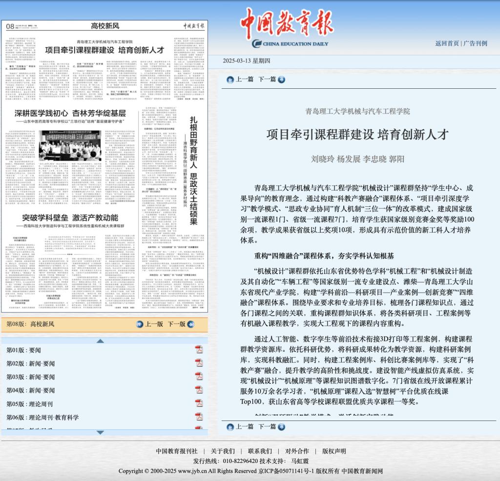 【中国教育报】项目牵引课程群建设 培育创新人才