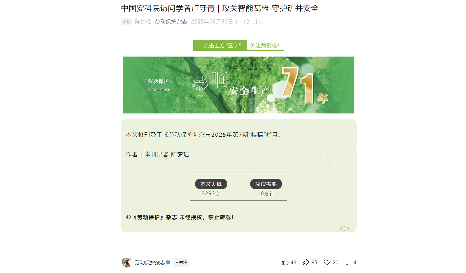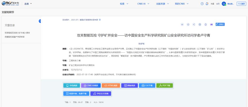 2024年7月,青岛理工大学安全工程专业硕士生导师卢守青,正式踏上了中国安全生产科学研究院(以下简称“中国安科院”)矿山安全研究所(以下简称“矿山所”)的访学之旅。访学伊始,他便参与了中国工程院战略研究与咨询项目——“我国东北地区关闭矿井建设储油库战略研究”。从参与国家级重大科研项目起步,到申报国家科技重大专项子课题“深部资源流态化开采灾害预测与防治方法”,再到承担“智能瓦检”技术服务课题,卢守青凭借扎实的工作作风和全身心的投入,为他的访学生涯打下了坚实的基础。