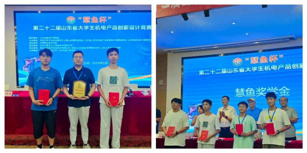近日,由山东省教育厅主办的第二十二届山东省大学生机电产品创新设计竞赛决赛在日照职业技术学院圆满落幕。PP电子游戏网站学子凭借扎实的专业功底与突破性的创新设计,斩获省赛一等奖5项,二等奖2项,三等奖2项,学校获得“优秀组织单位”,1项作品获得慧鱼奖学金,获奖质量和数量再创新高。